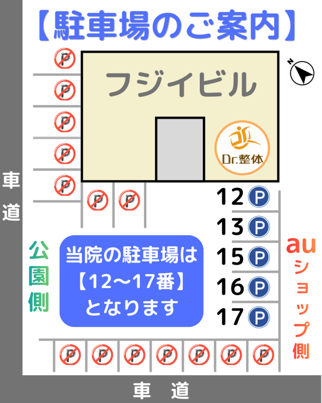 A:「はい、5台分ご用意させていただいております。院の扉から見て手前の駐車場、番号が12番~17番(14番は無し)です。