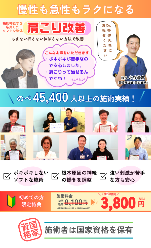 ◆ Dr.整体 天白の「肩こり」改善の3つの特徴